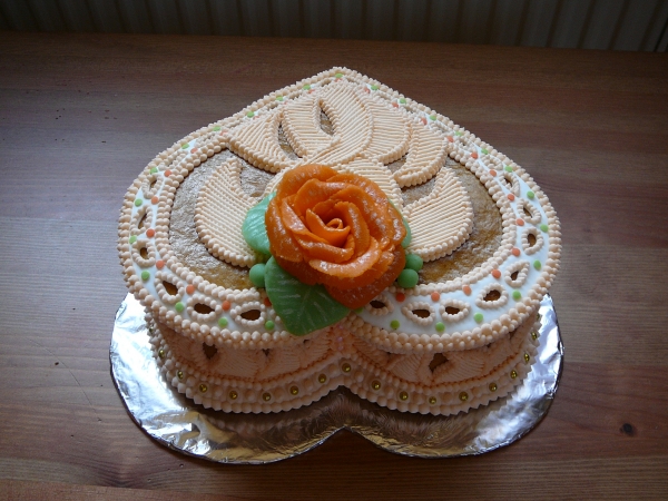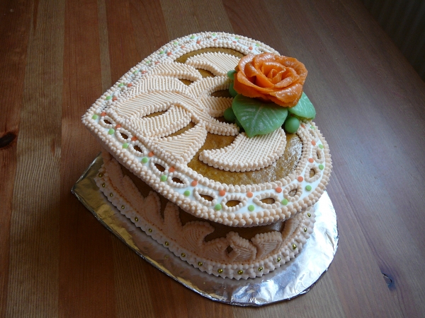 Moc se mi líbí srdcové kazety,tak jsem je také zkoušela upéct.První je hotová.Musím říct,že to není nic jednoduchého upéct boky kazety.
